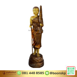 พระสารีบุตร เนื้อทองเหลือง พ่นทอง ขนาด 20 นิ้ว ความสูง 126 ซม.