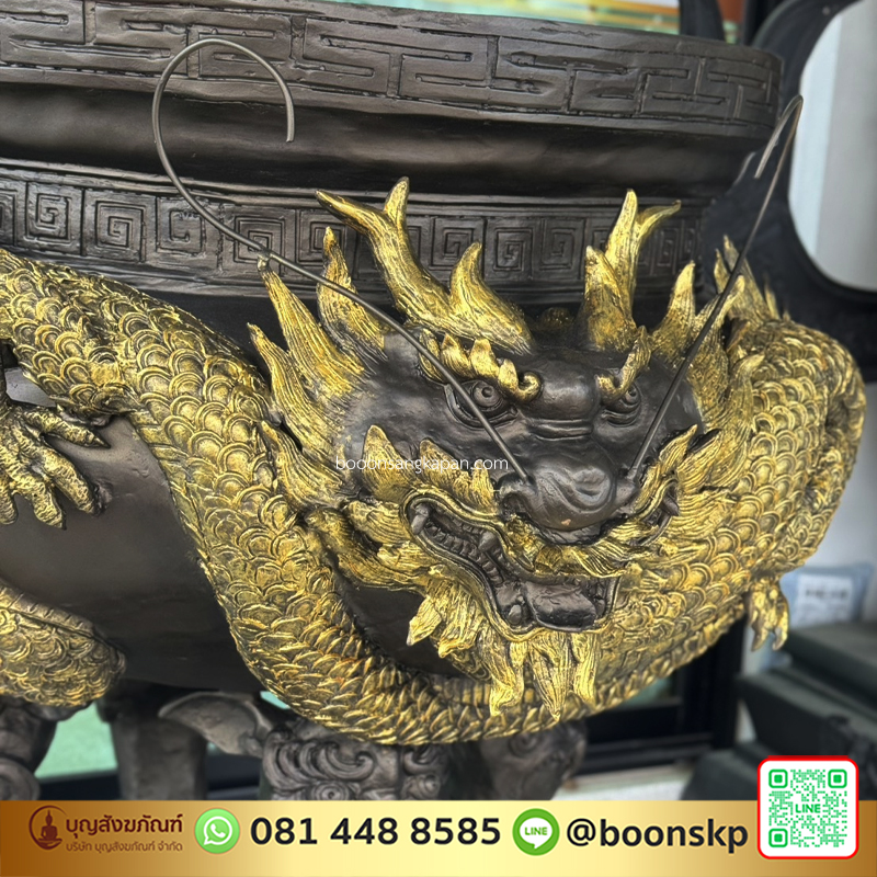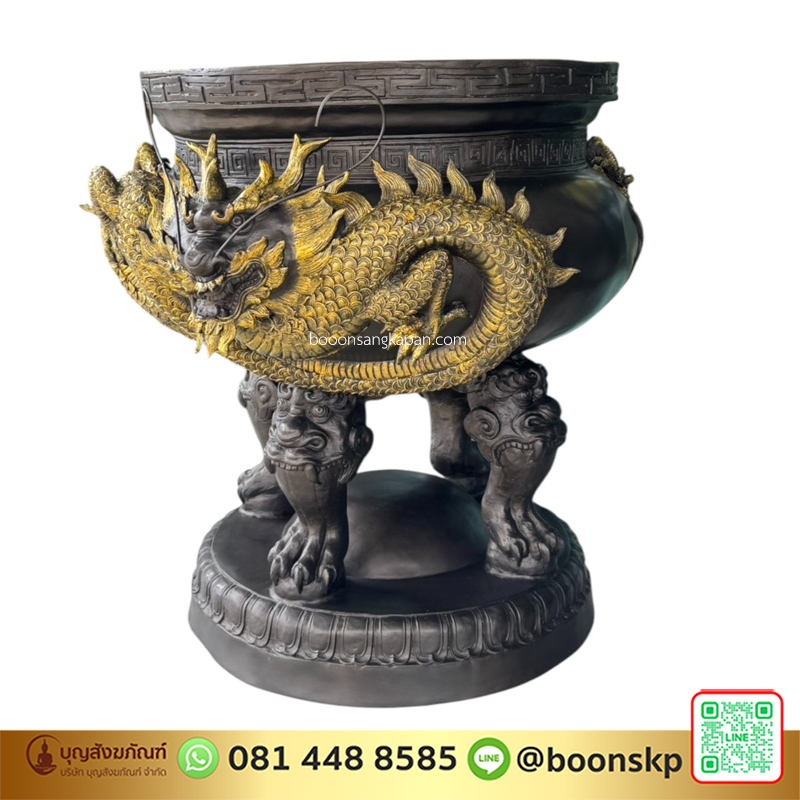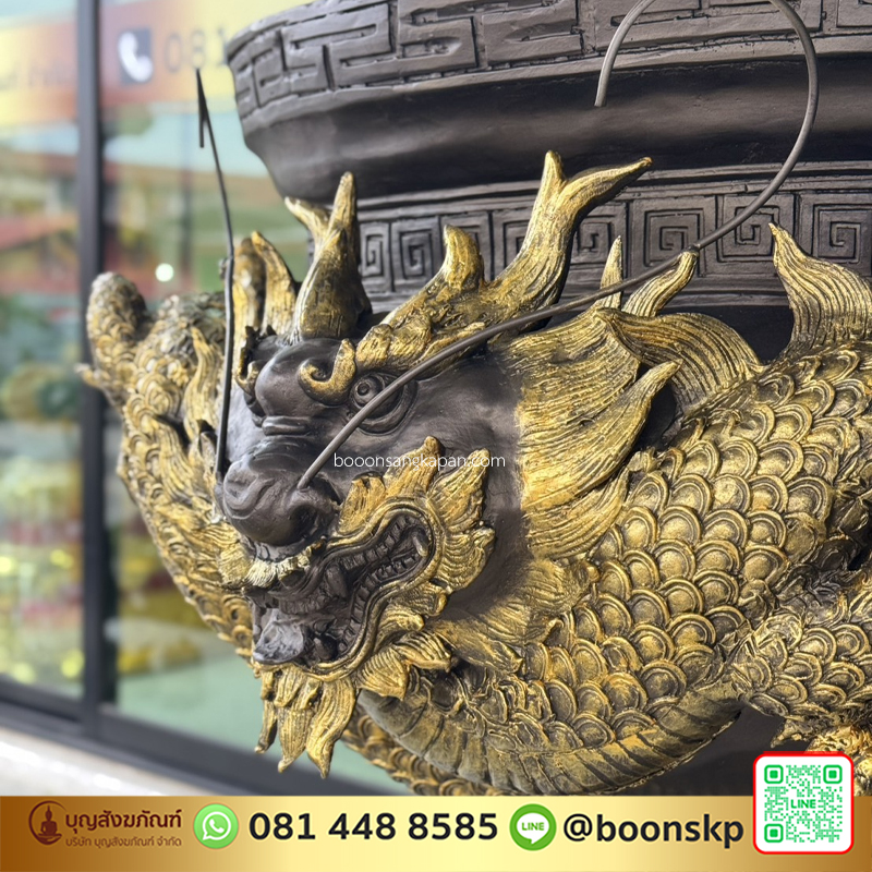 กระถางธูปทองเหลือง พ่นทอง มังกร แบบมีขาตั้ง,กระถางธูปจีน ขนาด 36 นิ้ว