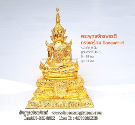 พระพุทธจักรพรรดิ ทรงเครื่อง เนื้อทองเหลือง ปิดทองคำแท้ หน้าตัก 5 นิ้ว